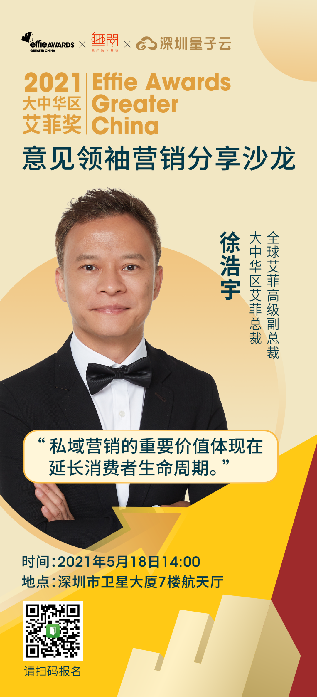 5月18日,艾菲奖赛事解读暨私域营销主题沙龙将在深圳市南山区卫星大厦举行。沙龙面向行业公开,邀请行业伙伴共话营销实效,及品牌私域营销的新风向。
