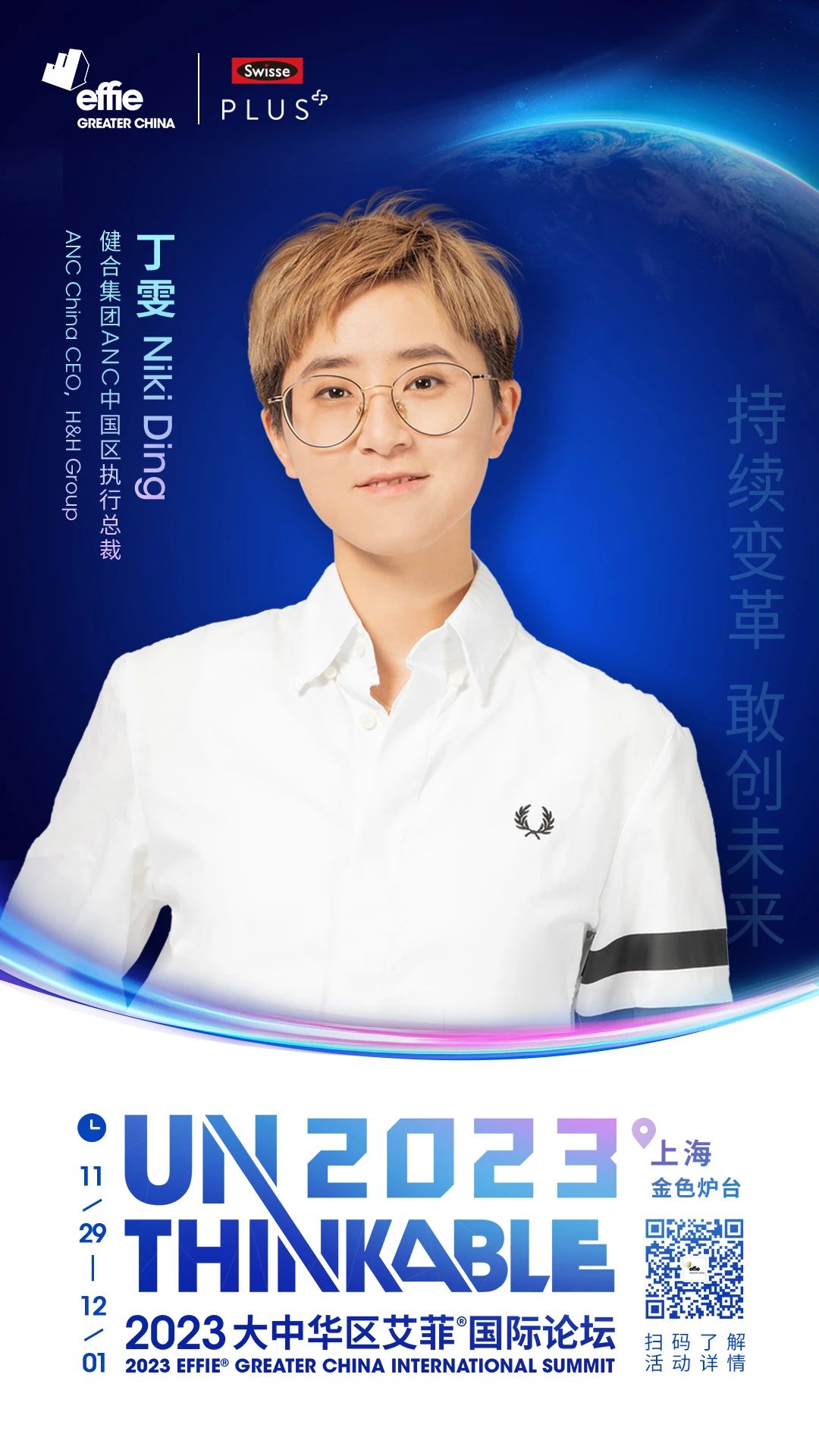 健合集团ANC中国区执行总裁丁雯女士出席2023大中华区艾菲国际论坛,并将在12月1日下午在“营在健康”板块作主题演讲。