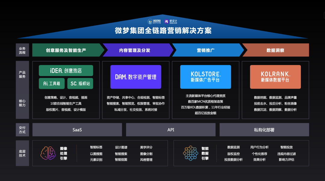 微梦传媒以“让新媒体营销更高效”为使命,目前已是国内领先的数字营销集团。作为国内最早从事新媒体营销的企业之一,微梦传媒立足行业高度布局新媒体生态,以大数据为基础,创意营销为核心,孵化AIGC数字科技企业爱设计,同时延伸布局内容创作平台(爱设计/365编辑器/AiPPT.cn/AIH5)、新媒体智能投放平台(KolStore)、新媒体大数据平台(KolRank)、投资孵化(微梦创投)等全产业链条,全方位赋能新媒体行业。