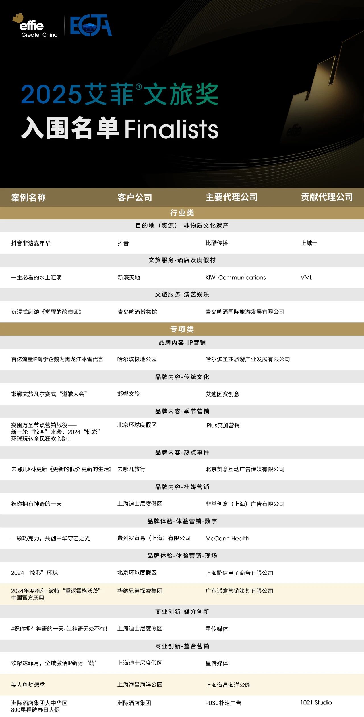 2025艾菲文旅奖入围名单正式出炉,祝贺所有入围作品及参赛单位!