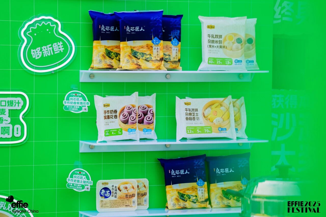 最具人气的“良芯匠人”区域,集中展示了叮咚在传统美食现代化方面的努力。现场陈列手作韭菜盒子、牛乳双拼杂粮米包、手作奶香紫薯花卷、牛乳双拼杂粮芝士卷等主食产品。以“用良心,致匠心”为理念,现场设置明厨窗口,师傅实时演示制作过程,香气四溢,成为展区中最具“烟火气”的打卡点。