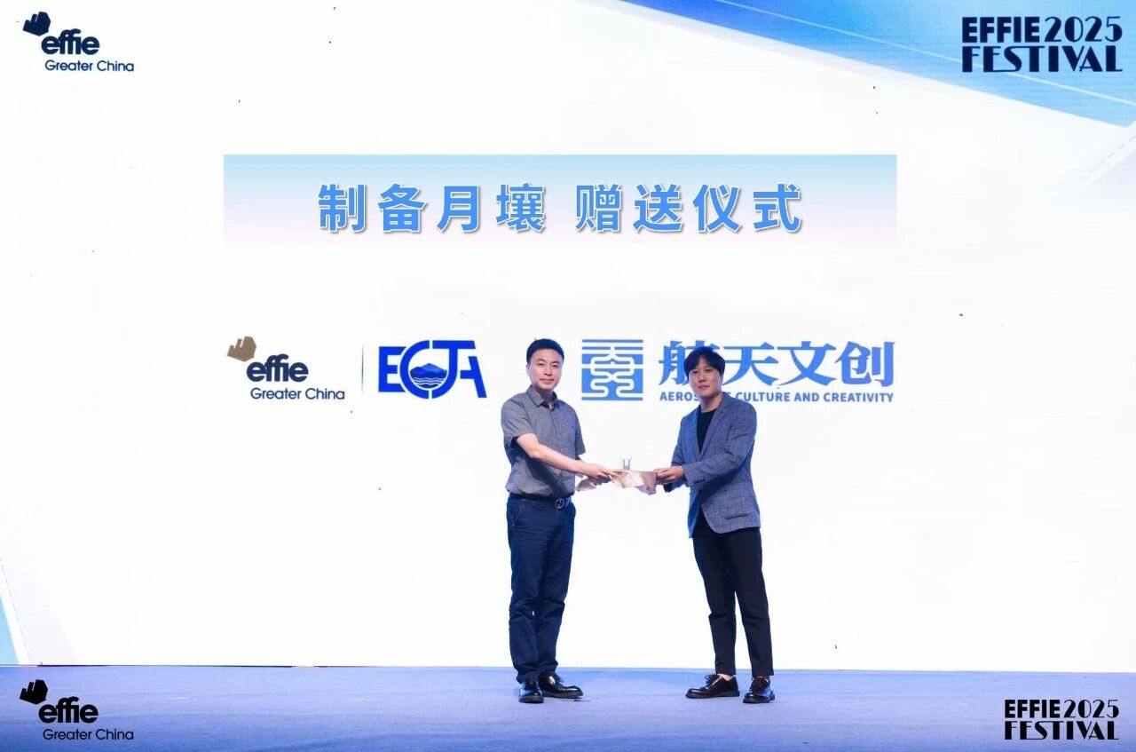 此外,为庆祝IP联盟的成立,航天文创发起人、中国航天科幻产业创新联合体联席主席、航天文创中心主任陈奕光先生向艾菲赠送了一份极具象征意义的礼物——制备月壤,寓意“脚踏实地,仰望星空”,共同探索文旅融合的无限可能。