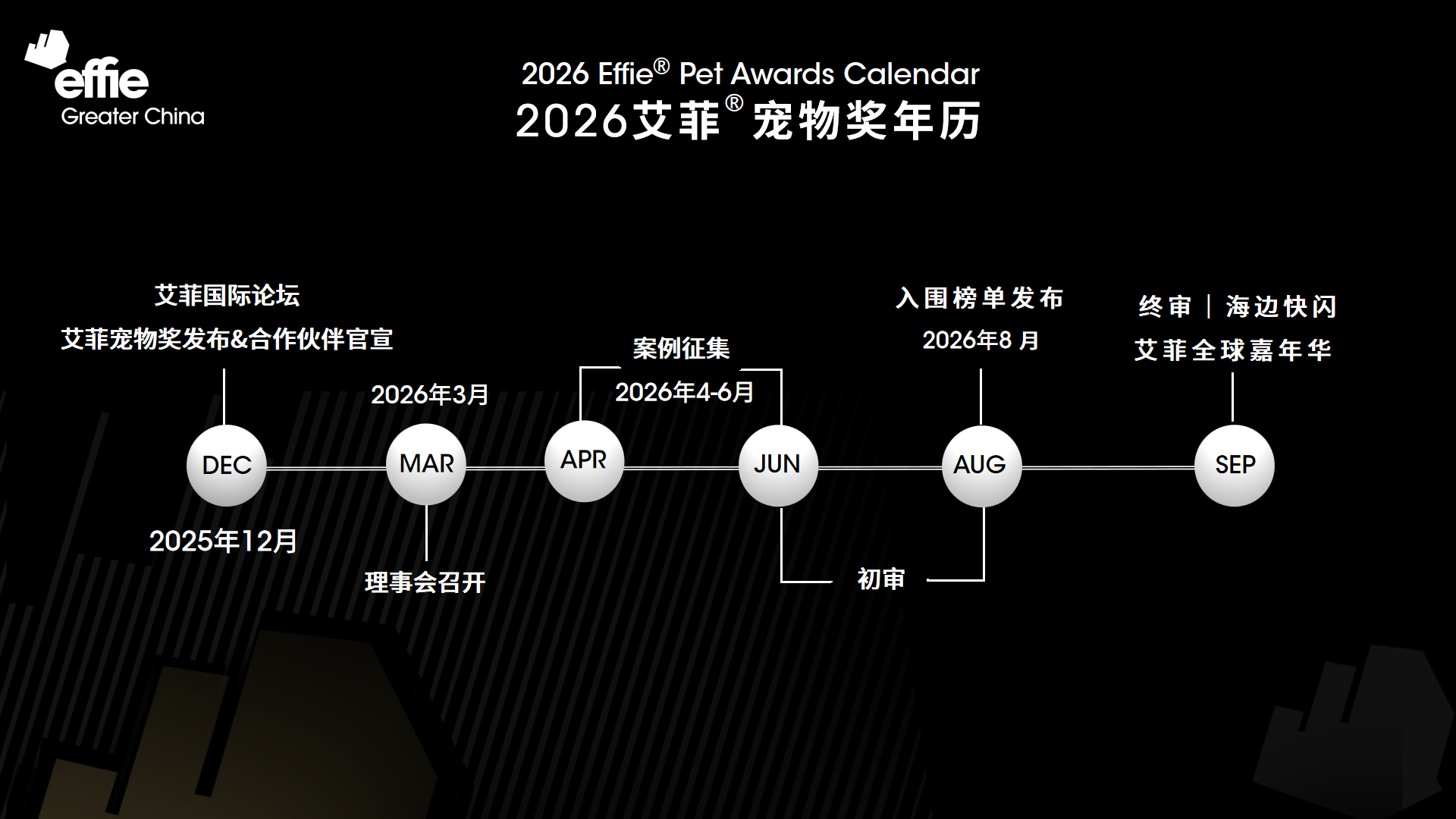 2026艾菲宠物奖(Effie Pet Awards)将表彰在宠物产品与服务营销领域取得卓越实效、推动行业创新与健康发展的杰出案例与品牌,为行业树立可借鉴、可学习的标杆。