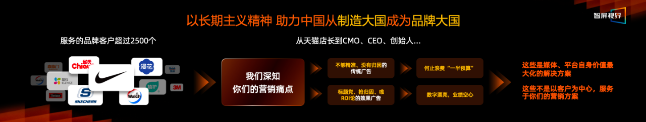面对营销现状亟需改变和中国从“制造大国”迈向“品牌大国”双重趋势,「智屏视界」将致力于帮助品牌重塑共同记忆,重建深度信任。