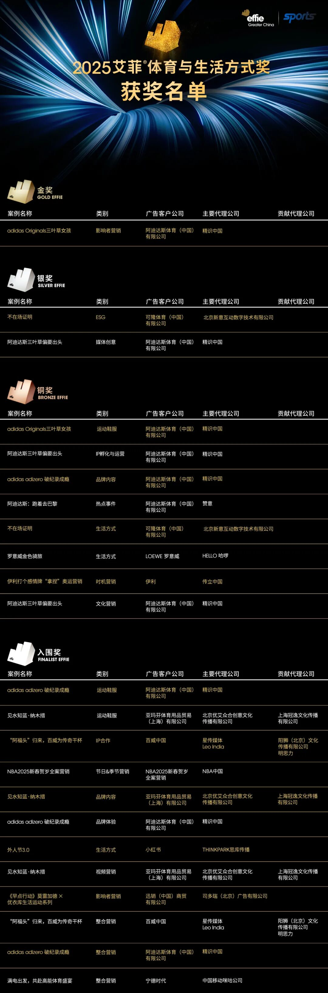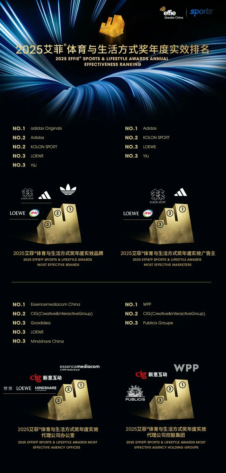 12月11日,2025艾菲体育与生活方式奖获奖名单及实效排名揭晓!恭喜所有获奖团队!