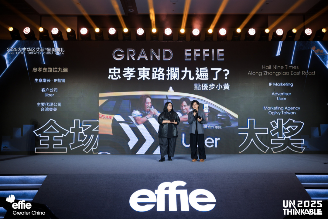 全场大奖由Uber和台湾奥美联合打造的案例《忠孝东路拦九遍》夺得。该案例以幽默夸张的方式呈现,歌词改编自动力火车的经典歌曲《忠孝东路走九遍》,将“走”改为“拦”,突出Uber平台叫车便捷的特点。