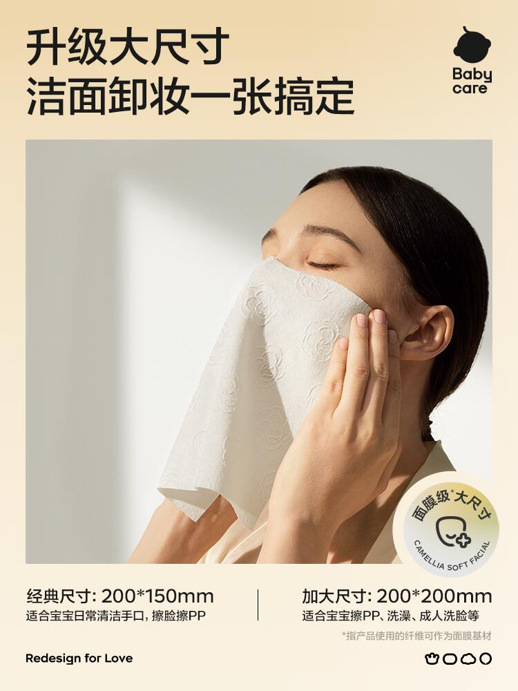 Babycare始终相信,真正的呵护藏于细节之中。一片柔软的面膜柔巾,不仅是产品,更是一份随时随地的温柔守护。
