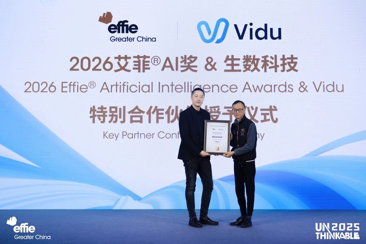 近日,在2025艾菲国际论坛活动现场,大中华区艾菲与生数科技达成战略合作并授予特别合作伙伴,共同成立2026艾菲AI奖,双方将携手推进AI多模态大模型在商业领域的创新与应用。
