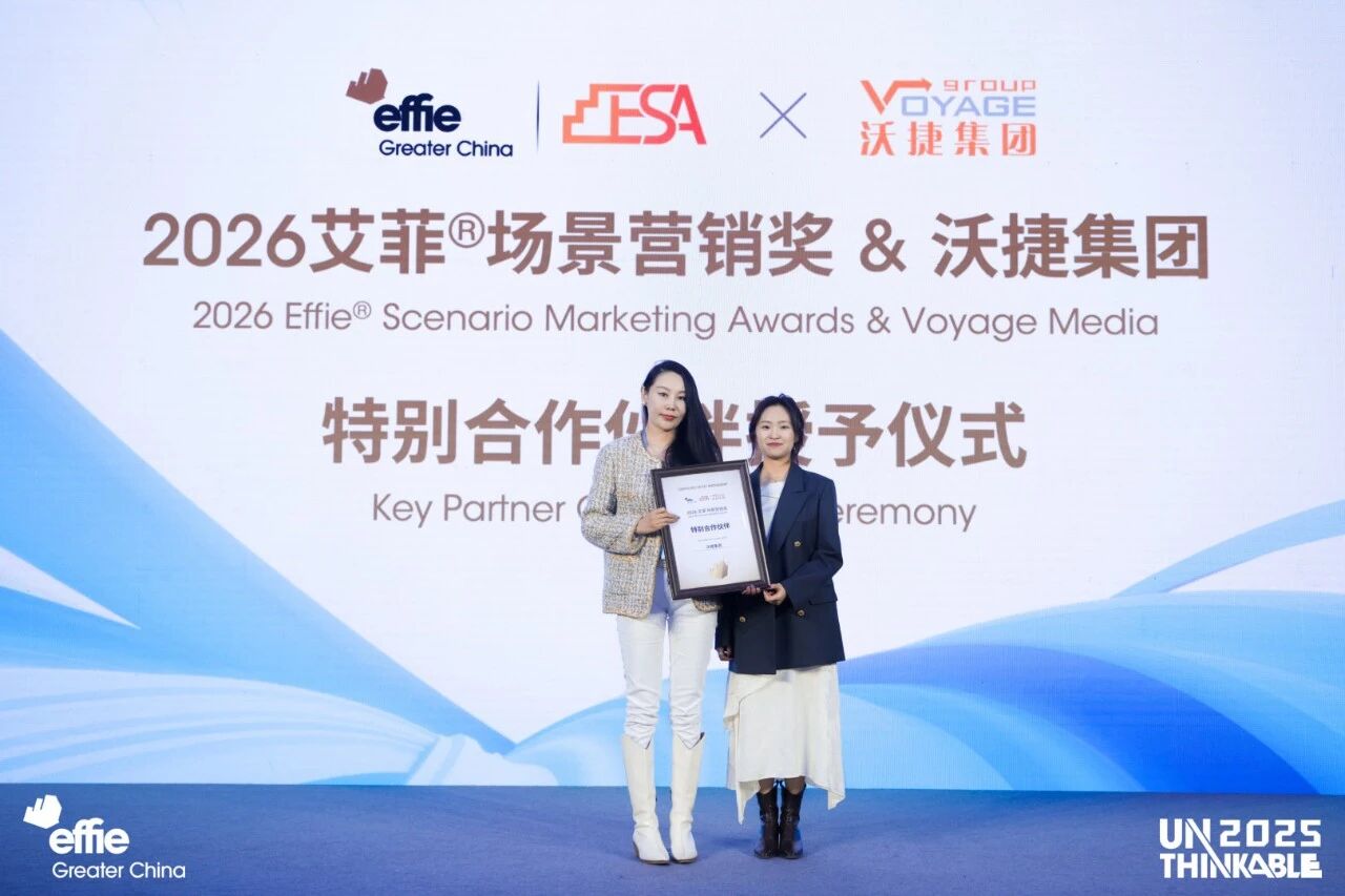 2026年,艾菲场景营销奖将迈入3.0时代。在2025艾菲国际盛典-艾菲品牌论坛上举行了2026艾菲场景营销奖特别合作伙伴授予仪式,正式官宣与沃捷集团达成第二年合作续约。共同聚焦场景营销,提升品牌商业价值。沃捷集团始创于2009年,是全国领先的综合性广告营销集团。集团拥有户外主流场景下的头部媒体资源,完善的媒介代理模式,强大的创意策划、数字营销、艺术商业化、AIGC创新场景及大数据等多元核心能力。集团始终深耕户外领域,持续探索创意创新与前沿技术的深度融合,以 “户外媒体应用专家” 的定位,为品牌解锁更多营销新路径(数据来源: 沃捷集团)。期待2026年,沃捷集团为艾菲注入更多鲜活的能量,与艾菲持续探索户外媒体在场景营销的创新与突破,为行业树立风向标。