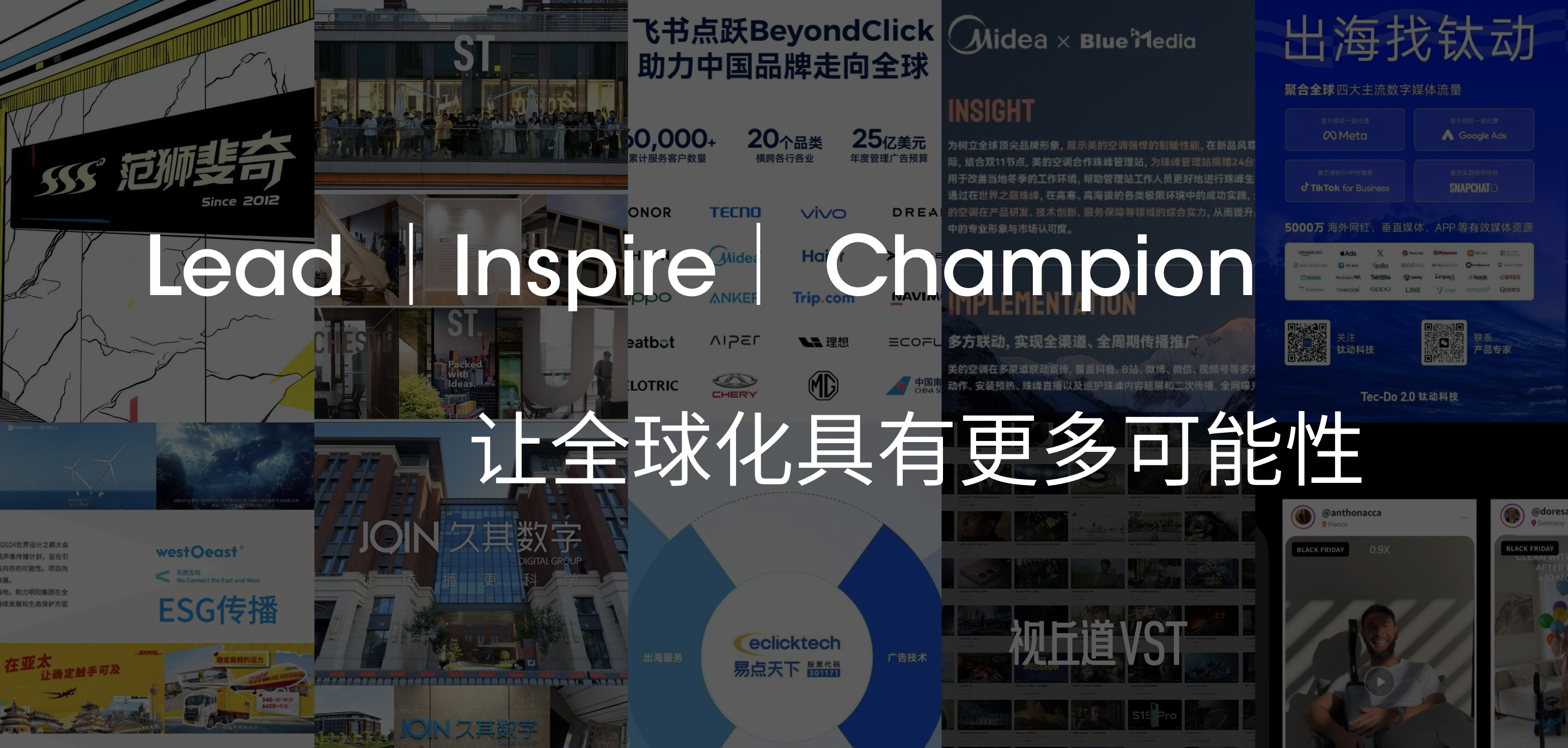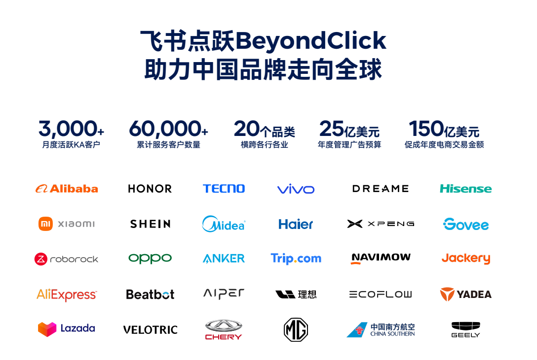 飞书点跃BeyondClick是飞书深诺集团旗下专注于电商与品牌出海的全域营销服务子品牌,面向中国企业提供 “数据驱动、策略支撑、落地见效” 的全球化营销解决方案。依托深度行业洞察、全链路营销能力与跨区域运营经验,帮助品牌高效触达海外市场与消费者,塑造全球影响力。