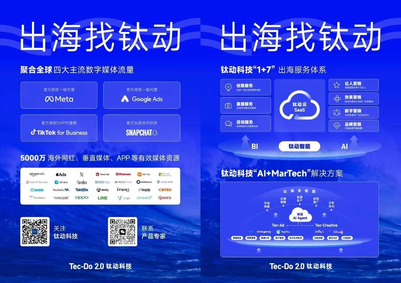 钛动科技成立于2017年,是领先的企业全球增长AI服务平台,总部位于广州,致力于以人工智能驱动商业增长,助力中国企业高效链接全球市场。公司以自研钛极多模态大模型为技术底座,构建“AI+BI”智能商业体系,提供从品牌认知到交易转化的全链路数字化增长方案。