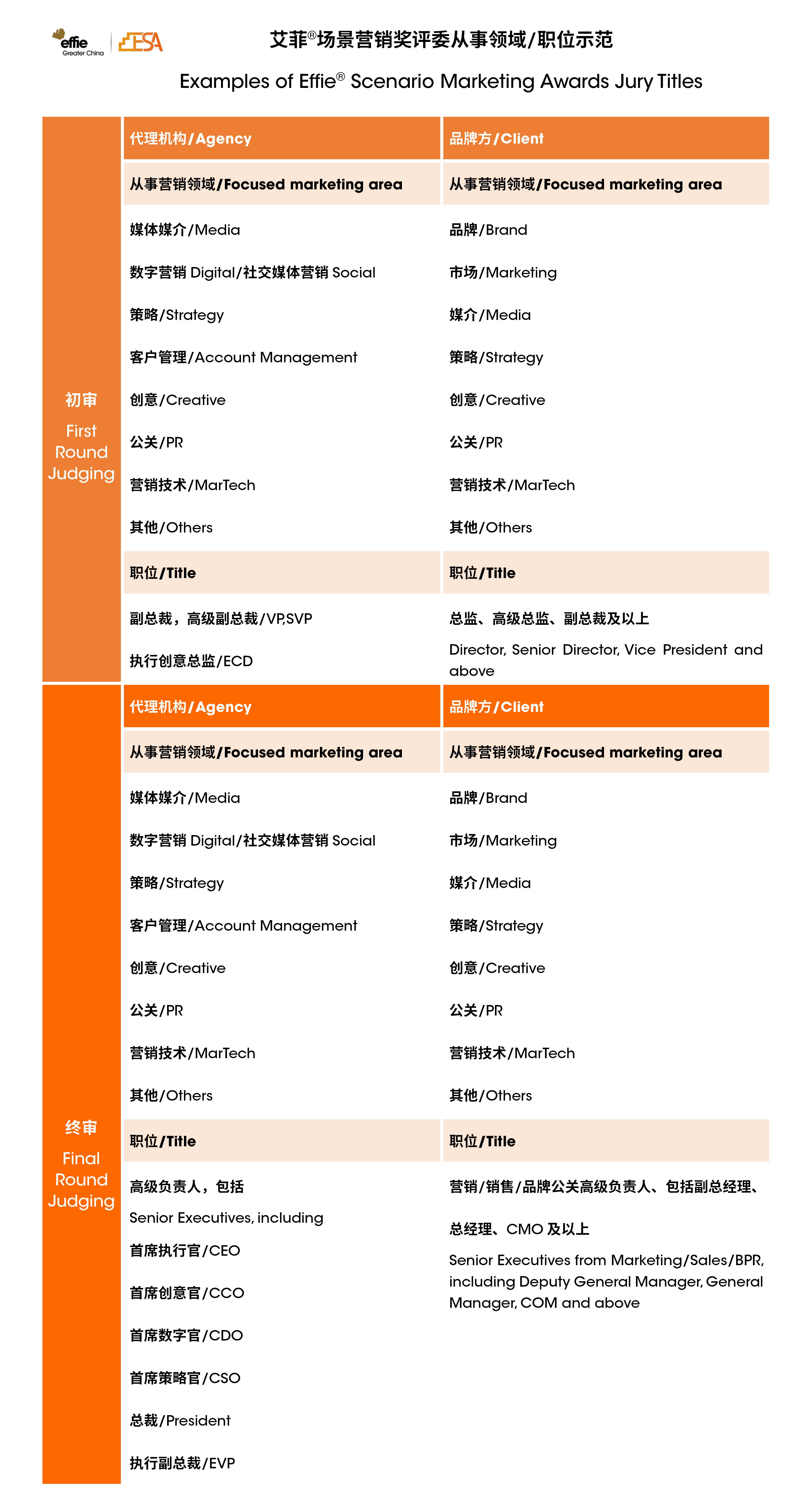 具有跨国家/地区市场从业经验的公司高层,有机会被推荐参与全球艾菲赛事项目评审,包括Global Effie: Multi-Region, Global Effie: Best of the Best等。