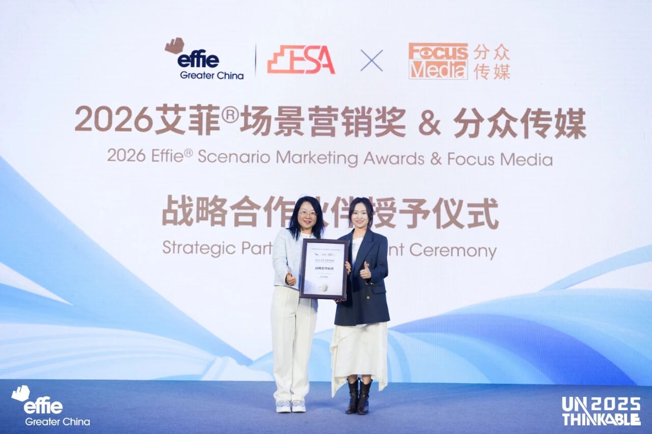 艾菲场景营销奖(Effie Scenario Marketing Awards)以艾菲四大支柱为基准,表彰品牌、媒体媒介、平台、代理和创意机构的案例和个人,聚焦场景营销,提升商业价值,致力于打造场景营销的风向标。2025赛季,艾菲场景营销奖报赛案例总量和报赛案例公司总量成倍增长!2026年,艾菲场景营销奖进入3.0时代。在2025艾菲国际盛典-艾菲品牌论坛上举行了2026艾菲场景营销奖战略合作伙伴授予仪式,正式官宣与分众传媒达成第三年的战略合作续约。以实效为锚,以场景为桥,携手深耕场景营销,共建行业风向标。分众传媒诞生于2003年,创建电梯媒体广告模式。作为全球市值最大的户外媒体公司,分众覆盖4亿中国主流消费人群,超300个城市,超300万电梯终端,具有“高触达、高关注、高频次、高完播”的独特媒体价值。当前,分众媒体广告已具备行业领先的可精准、可归因、可互动、可优化的持续迭代能力,为更多广告客户提供高质量赋能。(数据来源: 分众传媒)期待2026年,艾菲携手分众传媒继续深入探索场景营销特别是户外媒体营销的创新发展,为行业提供可参考的优秀案例。