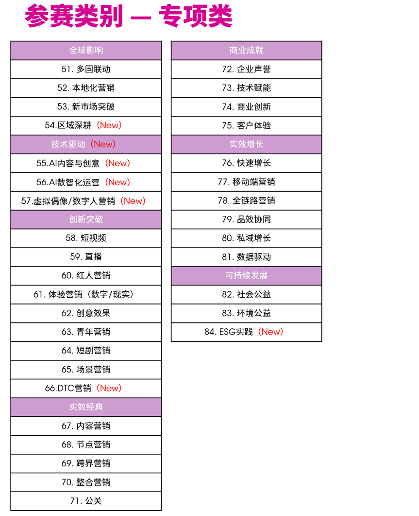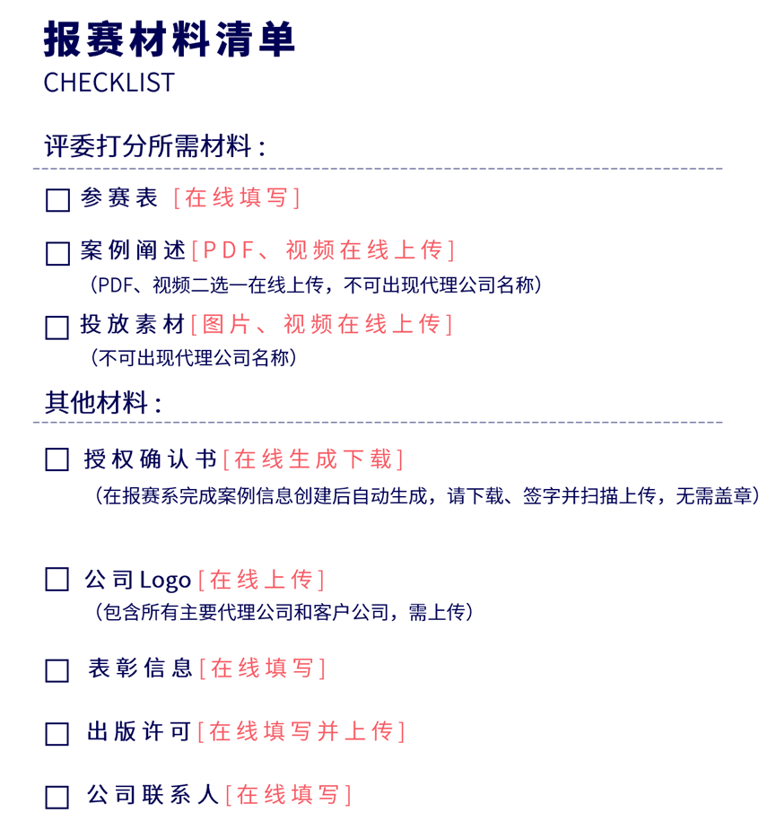 2. 贴合类别定义,突出核心价值:参赛单位可根据参赛手册全面了解所投报类别的具体定义,结合各类别核心要求,针对性阐述案例的背景、挑战、实施过程及实效成果,未贴合类别定义或未突出核心营销价值的案例,将影响评审得分。