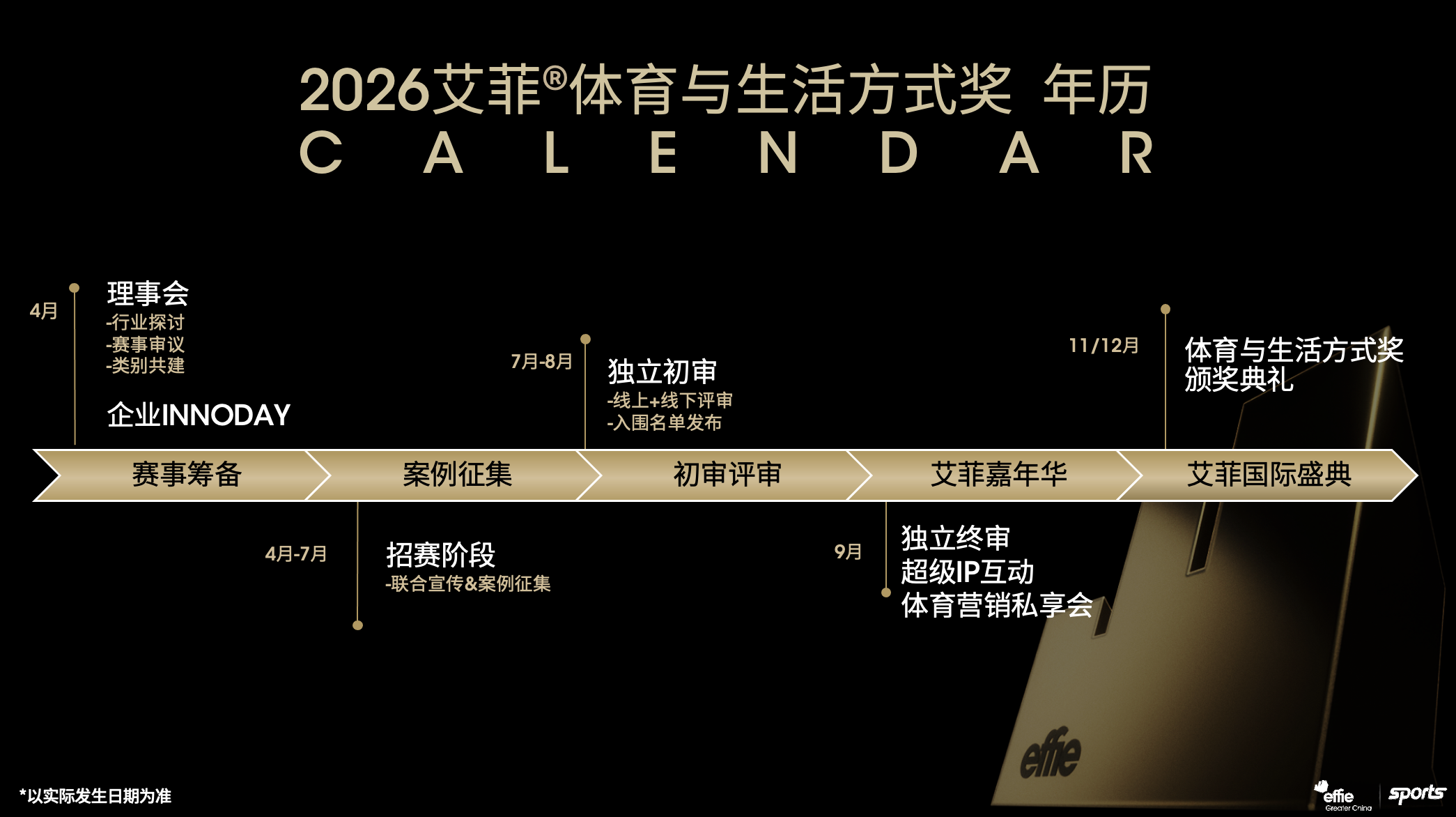 艾菲体育与生活方式奖作为2025年新升级的行业独立奖项,旨在表彰通过融合体育运动等元素或相关创意,展示创新玩法、传递体育精神和品牌价值的实践案例。 4月1日,艾菲体育与生活方式奖将正式启动!本届奖项将面向品牌方、国际及本土代理机构、平台方、赛事IP方等开启招募。2025艾菲体育与生活方式奖汇集了50+来自品牌、代理机构、平台及媒体媒介资深从业者,通过线上与线下的形式展开了专业评审,共同甄选赛季入围作品与最终获奖案例。 2026年,艾菲体育与生活方式奖诚邀行业资深人士加入新赛季评审团,共同推动体育营销领域创新与实效! 洞察前沿趋势 接触年度最具实效的体育营销案例,深度拆解前沿营销方法与实效逻辑,洞察体育营销最新趋势与市场动态,为商业决策提供灵感与启发。 积累人脉资源 艾菲体育与生活方式奖评委由来自国内外知名品牌、代理机构、互联网平台、科技公司、媒体媒介等领域的资深从业者构成。加入评审团,在评审活动中高效链接来自不同领域的专业人士,积累优质人脉资源。 跨界交流碰撞 与多元领域的评委深度研讨,在案例评审与观点交锋中,碰撞多元思路,拓宽思维边界,解锁体育营销创新灵感。 赋能营销生态 通过专业评审甄别优秀体育营销案例,以实效思维推动营销革新,助力营销生态的可持续发展,探索实效营销新高度。 拓展全球视野 具有跨国家/地区市场从业经验的公司高层,有机会被推荐参与全球艾菲赛事项目评审,包括Global Effie: Multi-Region, Global Effie: Best of the Best等。 1. 各行业的企业营销负责人,总监、VP、CMO及以上; 2. 具有大中华地区(大陆及港澳台)至少一个地区或以上的市场经验,且具备多年从业经验; 3. 奖项评委需积极参与艾菲体育与生活方式奖案例征集。