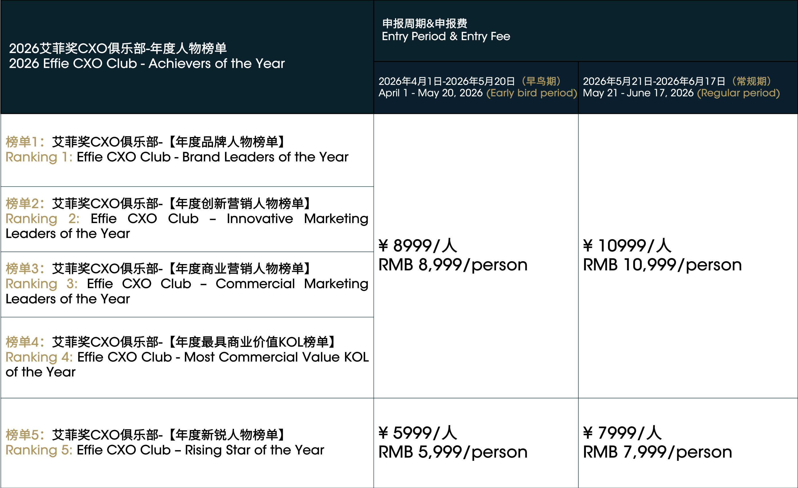 有意申报《2026艾菲奖CXO俱乐部年度人物榜单》的行业伙伴可联系负责人详细咨询:
