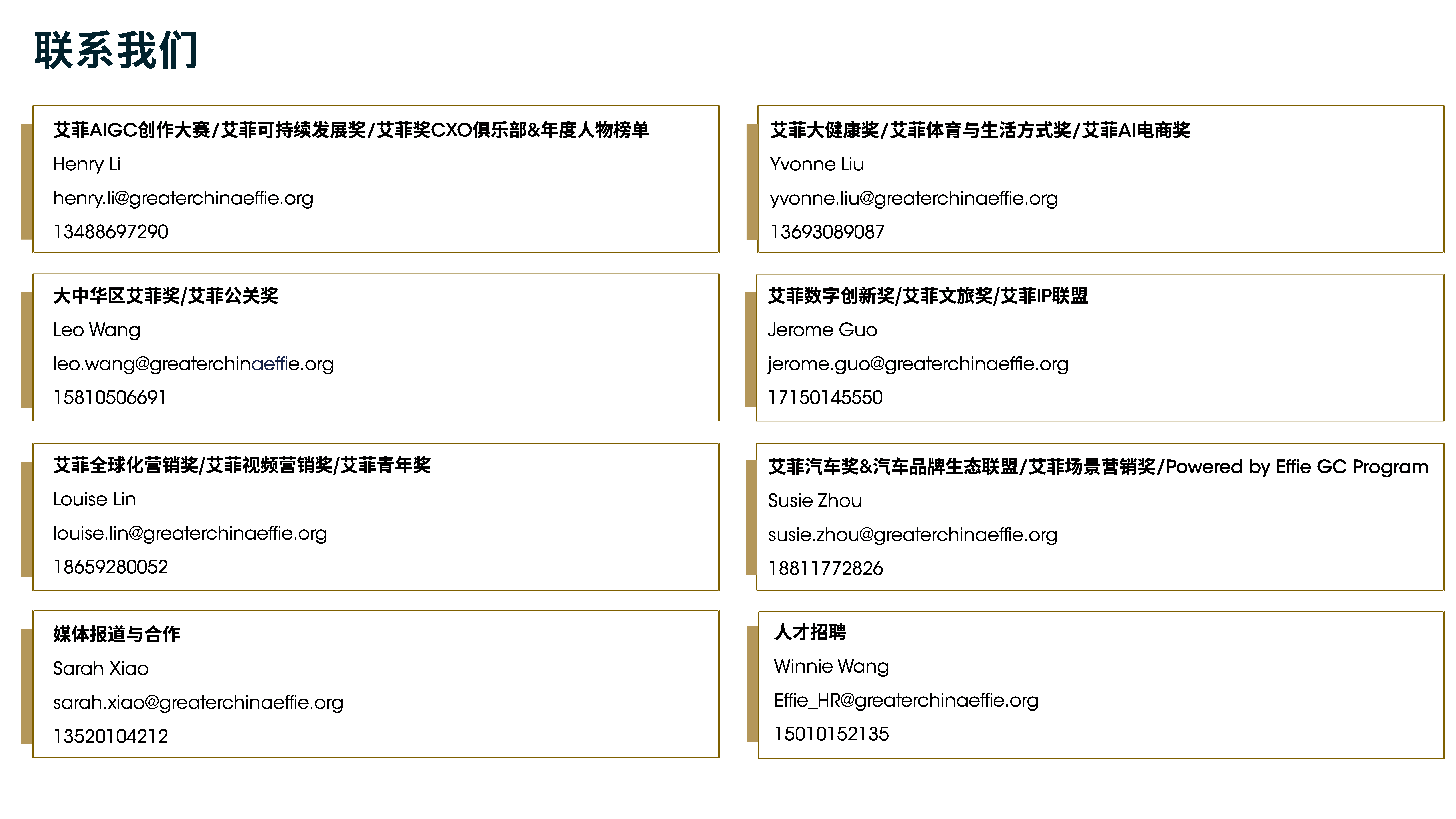 今年,大中华区艾菲进一步完善赛事布局,洞察行业演进动态,优化奖项类别,以经市场验证的实效衡量体系,表彰达成实效的策略和行之有效的创意。新赛季,我们期待发掘更多细分赛道下的优秀实践,见证实效营销推动品牌破局生长。