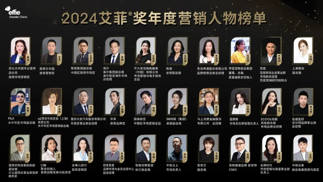 艾菲奖CXO俱乐部自2022年9月成立,汇聚200+跨行业C-level高管(CEO/CMO/CDO等)。依托艾菲全球资源,聚焦品牌实效增长与创新,打造“共建共融共享共赢”的高端行业智库。基于此深厚积淀,艾菲发起年度人物榜单,旨在树立各圈层实战标杆,以先锋力量砥砺行业前行。